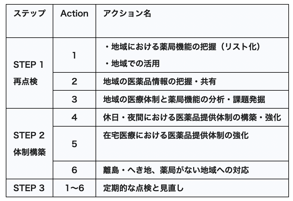 Action1 地域における薬局機能の把握(リスト化)・地域での活用